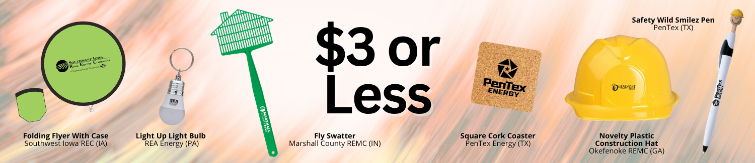 Choice Concepts has been personalizing electric membership cooperatives since 2012. By serving co-ops throughout the United States, we understand their unique needs. We’re here to assist you with ideas and the creation of custom products for annual meetings, safety campaigns, employee appreciation, retirements, community days, fairs, or new programs, such as solar, wind, and broadband, all of which add value to your brand.
